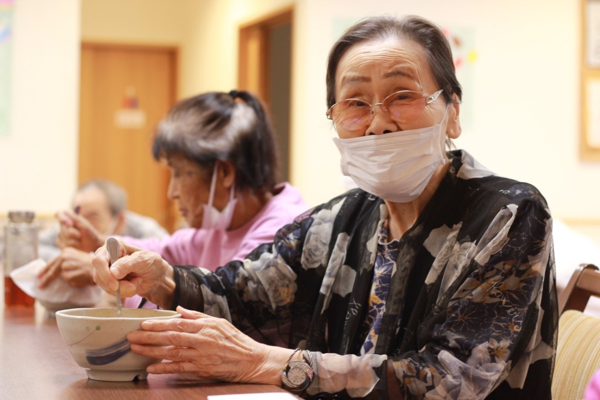 この日は、カボチャを使ったスイートポテトならぬ「スイートパンプキン」を皆さんで作りました。 しっかりつぶして混ぜて、滑らかにやさしい甘さに仕上がりました。 焼いている間はスタッフがカボチャにまつわる豆知識やクイズなどを皆さんに投げかけ、ワイワイと楽しいおやつレクリエーションとなりました。