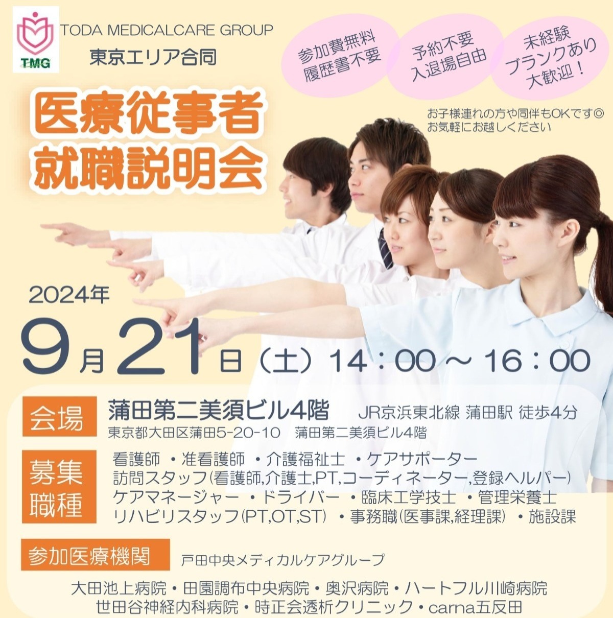 戸田中央メディカルケアグループ(TMG)の東京エリア合同就職説明会を実施いたします!